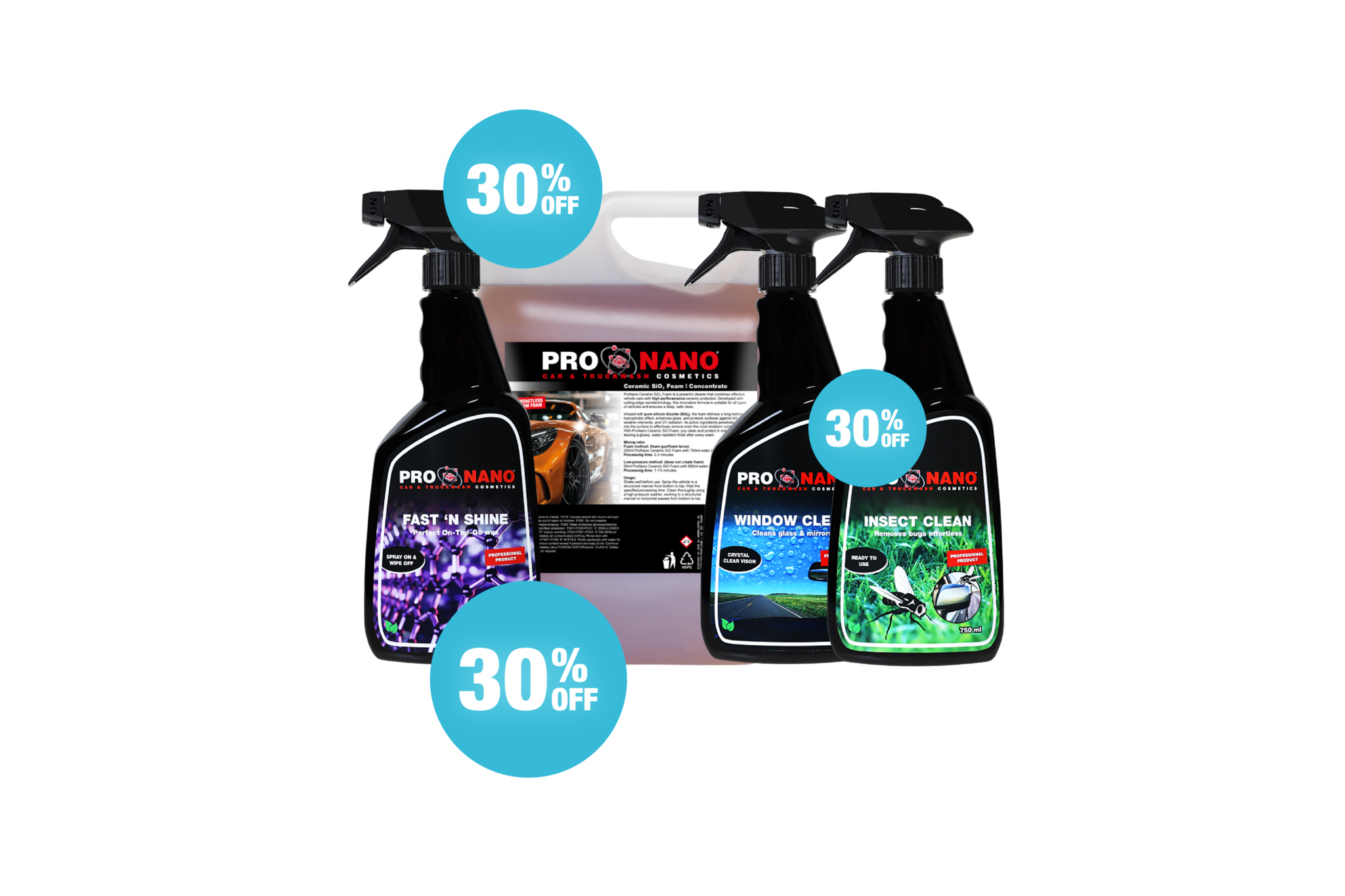Spring has sprung! Get your vehicle ready for the new season with this special spring deal. This package includes all the essential products to get your vehicle in top condition. Take advantage of a 30% discount now and start spring with a radiant vehicle
