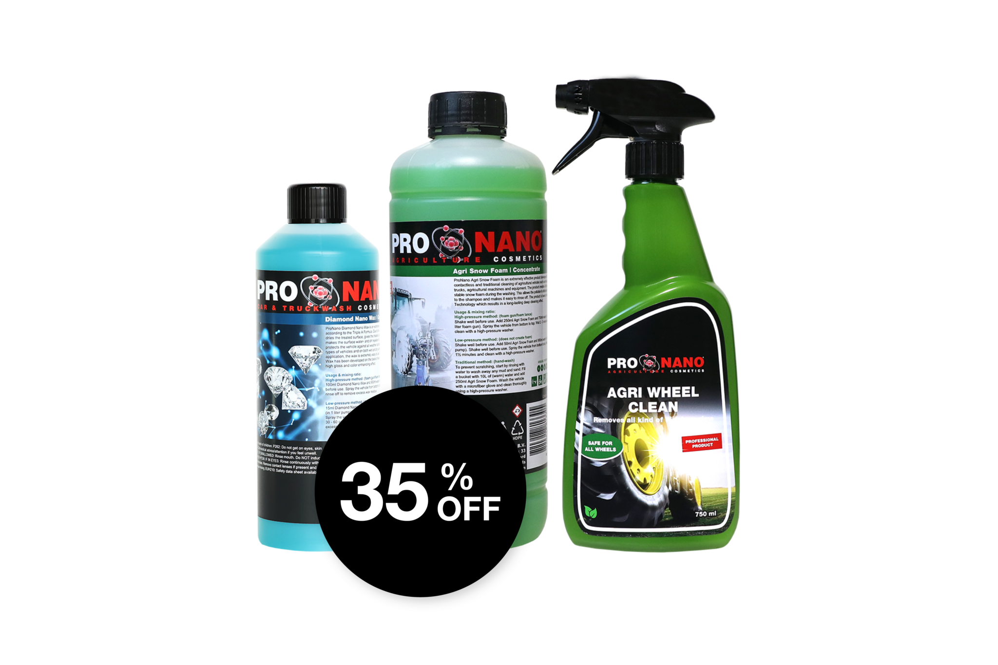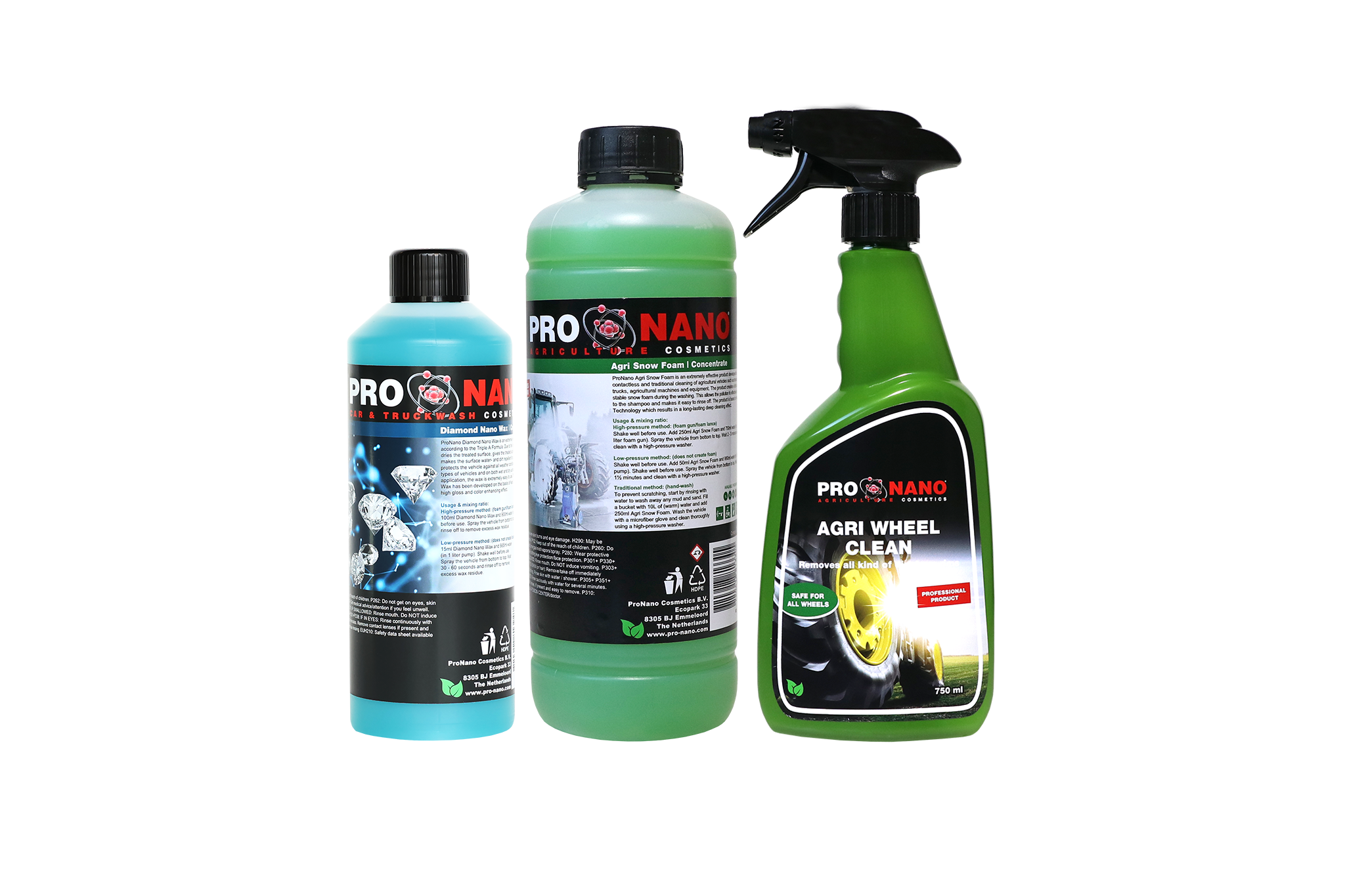 Easily switch to contactless cleaning; the ProNano Starter Kit Agri contains the essentials for a basic ProNano Wash for agricultural vehicles. In three simple steps, you'll experience the ultimate washing results. Get started right away!