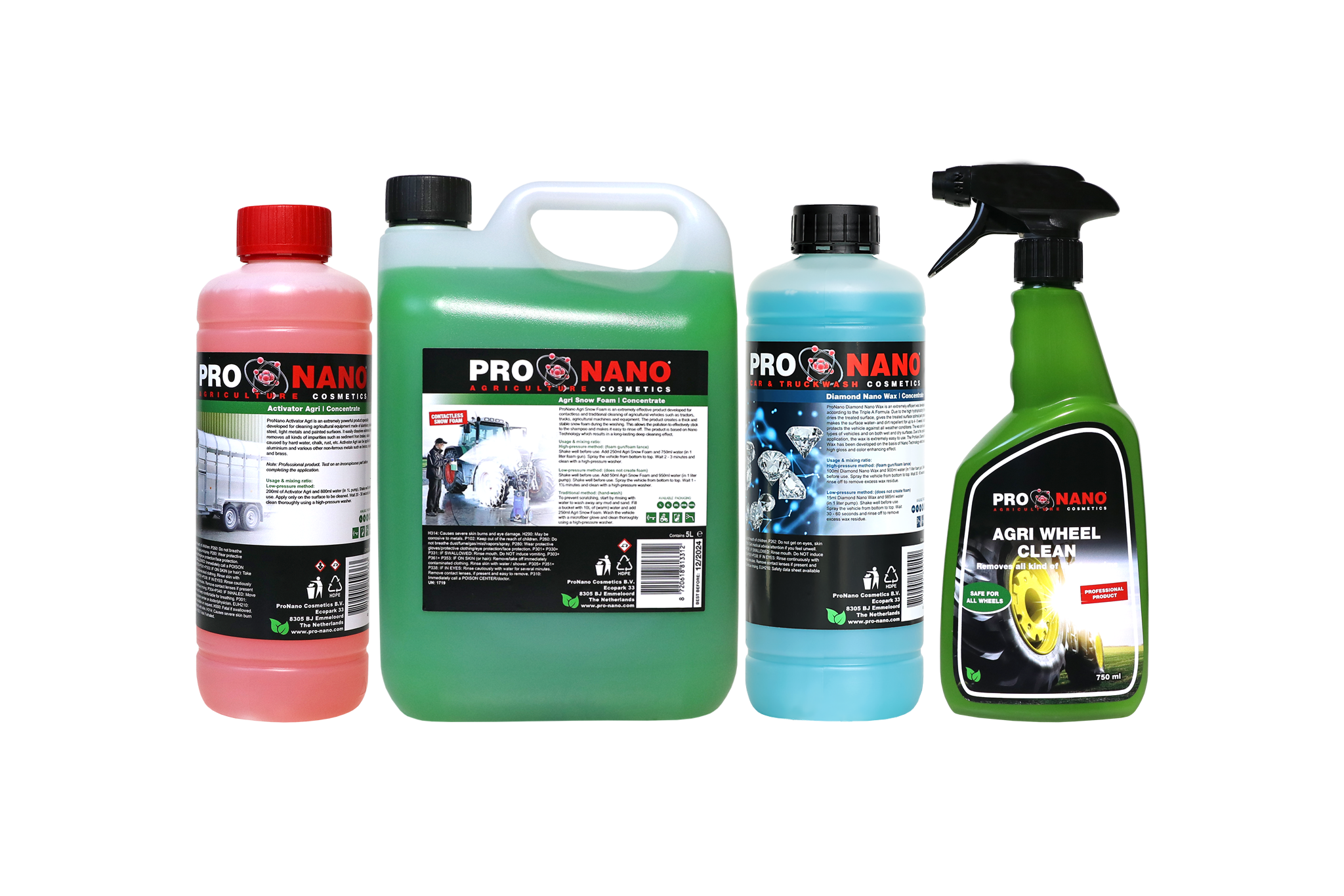 L'Activateur Agri ProNano est un produit extrêmement puissant, spécialement conçu pour le nettoyage des machines agricoles en aluminium, acier inoxydable, alliages légers et surfaces peintes. Il dissout facilement les salissures tenaces et élimine toutes sortes d'impuretés telles que les résidus de frein, les taches d'eau dure, le calcaire, la rouille, etc. L'Activateur Agri peut être utilisé sur l'aluminium et divers autres métaux non ferreux tels que le bronze, le cuivre et le laiton.