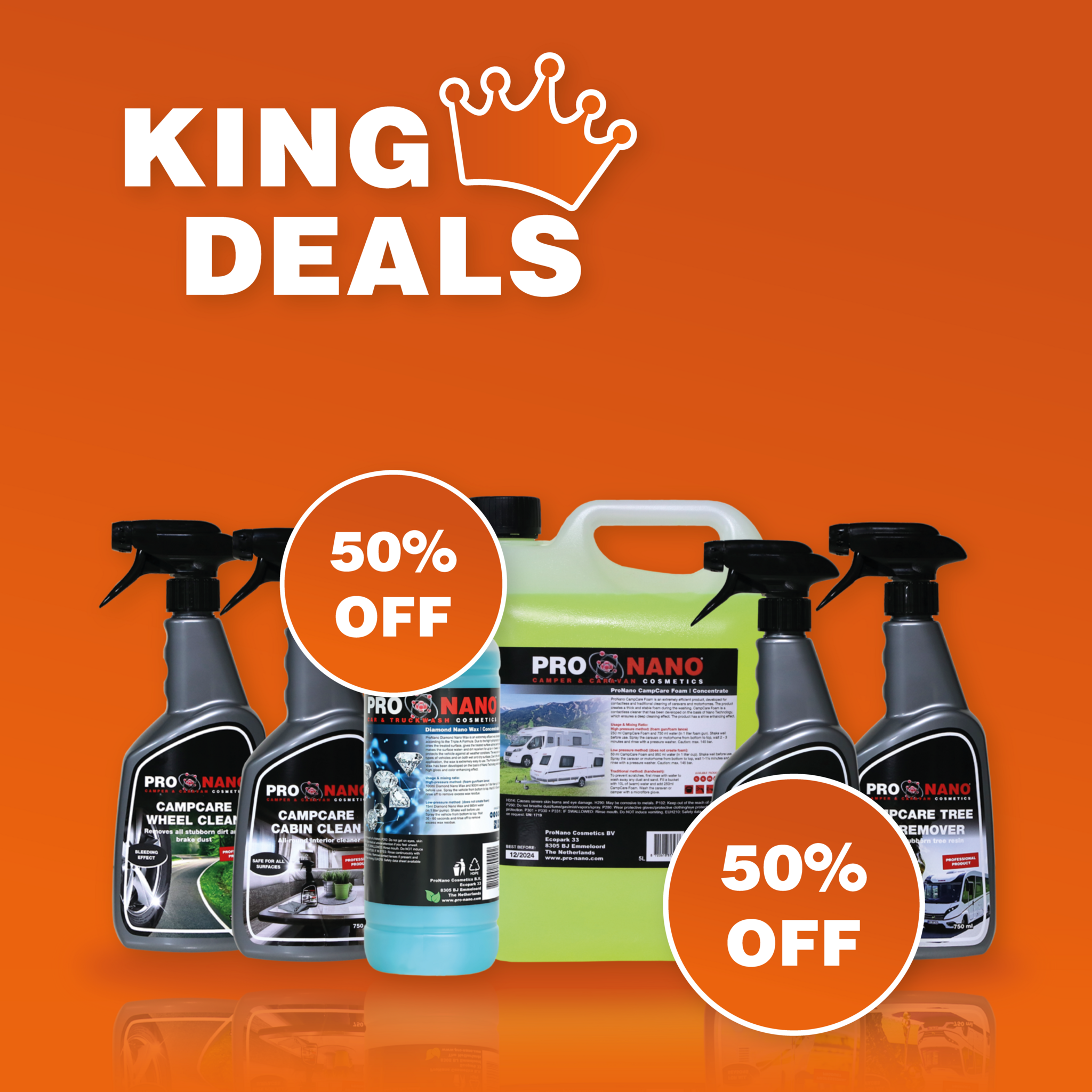 Approfitta subito dello sconto del 50% su questo esclusivo pacchetto CampCare! Offri al tuo camper o alla tua roulotte le cure che meritano con i nostri prodotti di alta qualità per una protezione perfetta e una brillantezza radiosa. Cogli l'occasione e fai risplendere il tuo amato veicolo come mai prima d'ora!