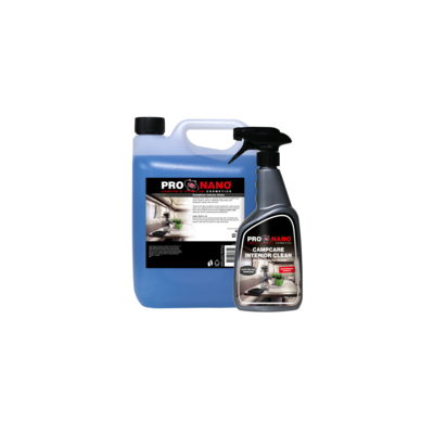 ProNano CampCare Interior Clean è un detergente universale per pulire in modo rapido ed efficace gli interni del tuo camper o caravan. Il prodotto pulisce tutte le parti in plastica, le superfici verniciate, i cruscotti, le cabine di pilotaggio, i rivestimenti, le portiere e molto altro. Contiene un'alta concentrazione di principi attivi e rimuove macchie, polvere e odori sgradevoli, lasciando un piacevole profumo di fresco.