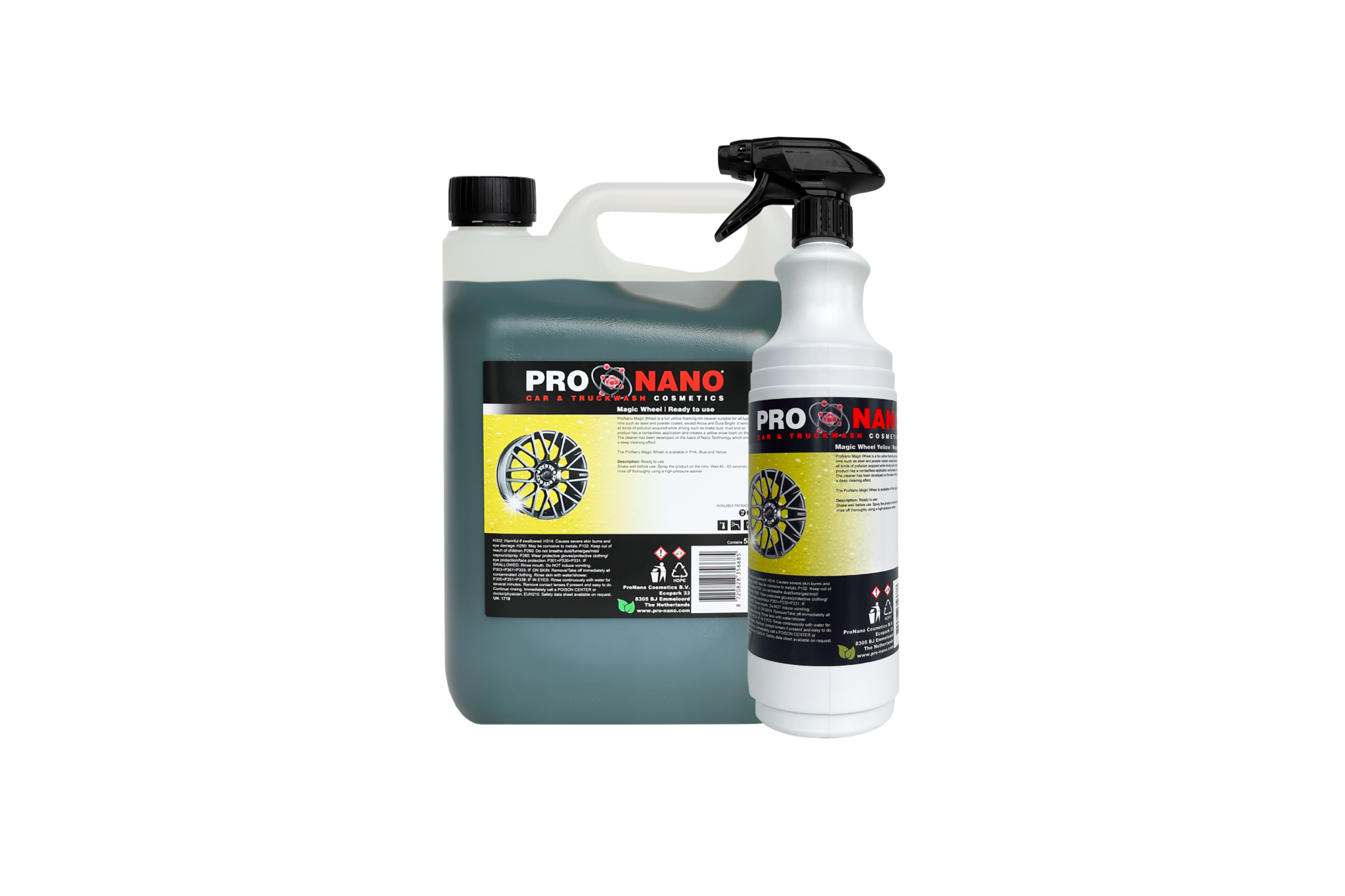 ProNano Magic Wheel Yellow è un detergente per ruote magico ed efficace con un'efficace formula schiumosa di neve gialla. Il prodotto è adatto a tutti i tipi di cerchi, ad eccezione dei cerchi Alcoa e Dura Bright. Il detergente per ruote rimuove senza sforzo tutti i contaminanti acquisiti durante la guida, come polvere dei freni, olio e fango. Grazie all'applicazione contactless, applicare questo prodotto è semplice ed efficace, creando allo stesso tempo una schiuma di neve giallo brillante sui cerchi.