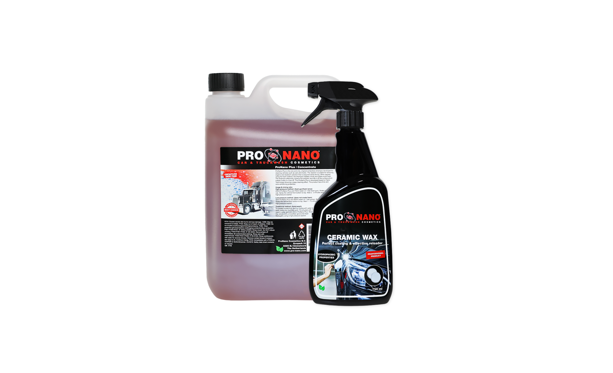 Ervaar een ongeëvenaard resultaat met deze EXCLUSIEVE deal! Onze ProNano Plus, de ultieme original, is een hoogwaardige contactloze reiniger die een volle snow foam laag produceert tijdens het aanbrengen volgens de schuimmethode. Verzeker u van een diepgaande reiniging! Geef uw voertuig vervolgens een hoogglans finish met de ProNano Ceramic Wax en ervaar hoe de oorspronkelijke lakkleur weer tot leven komt. Geniet niet alleen van de cosmetische voordelen, maar ook van de ultieme bescherming die de Ceramic Wax biedt aan uw voertuig!