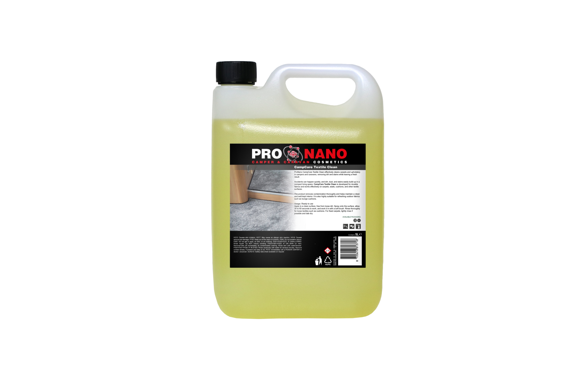 ProNano CampCare Textile Clean is een effectieve reiniger voor het grondig reinigen van tapijt en bekleding in campers en caravans. Het product verwijdert eenvoudig vuil en vlekken en zorgt voor een fris en verzorgd interieur.