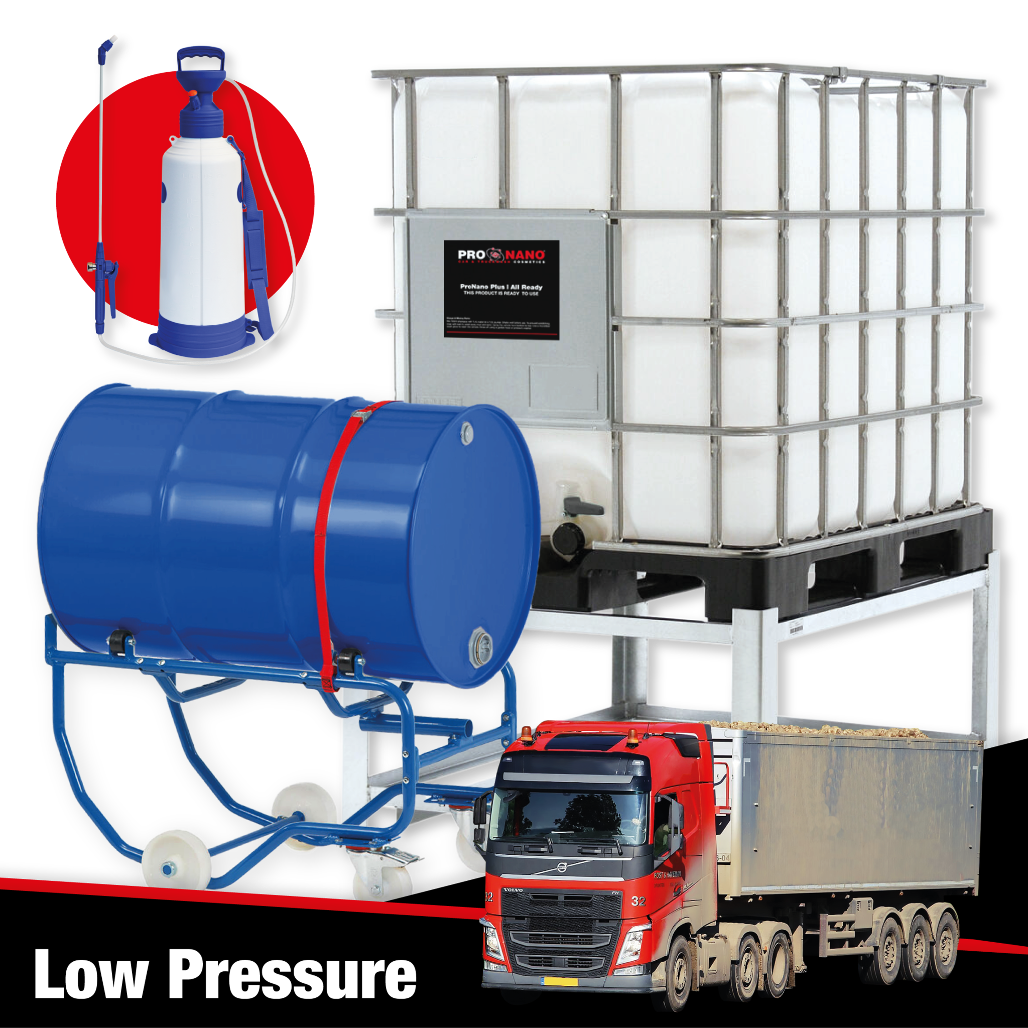 Pak uw lagedrukpomp en vul deze met ProNano All Ready.